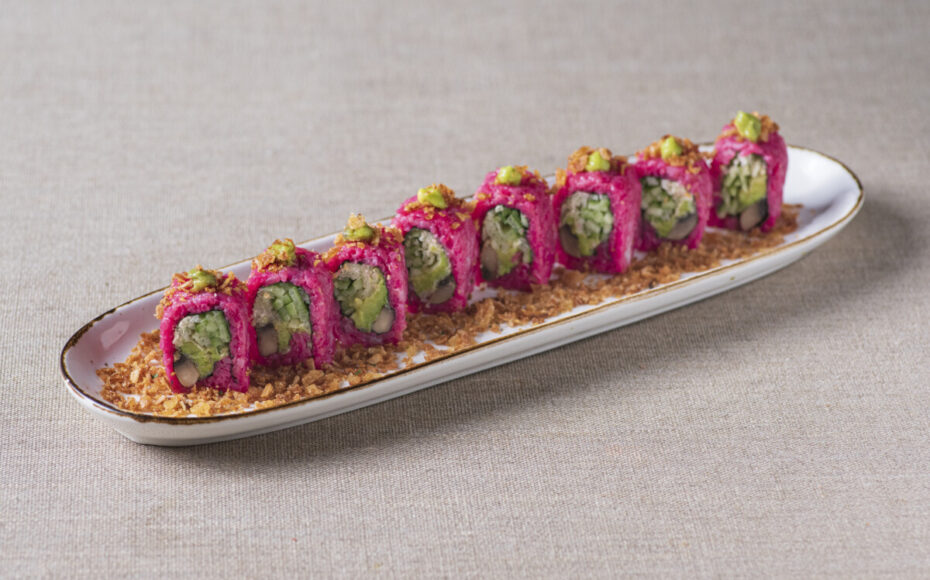 בגזרת הסושי : רד בנד – אורז אדום, אבוקדו, פורטבלו, קרם סלק, מלפפון, פפאיה, קרם קשיו, שבבי בצל, גוואקמולה.
