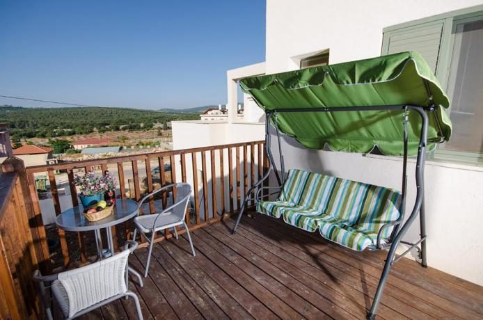 בחצר המתחם גינה מטופחת, נדנדה וערסל ופינת ישיבה מוצלת. האורחים נהנים מפרטיות מוחלטת ומשלווה כפרית אמתית.