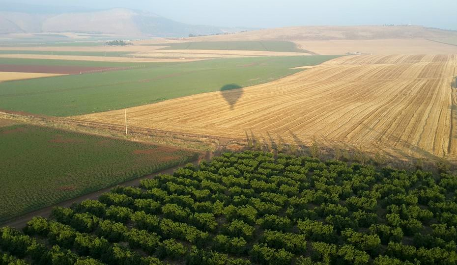 מלמעלה נגלה נוף מרהיב של שדות הגלבוע מחולקים לפי צבעים וגדלים, מחזה מרהיב של זריחה ונוף עוצר נשימה, הרים ועמקים, מגובה 3000 רגל משאיות נראות כמו משחק לגו ומטוס ריסוס שטס תחתינו נראה כמו עוד חלק מהפליימוביל.